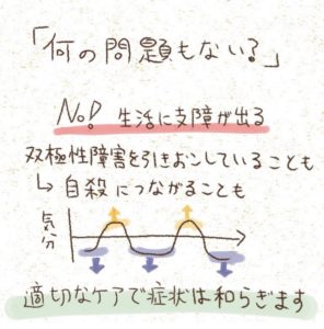 HOME > 記事 > メンタルヘルスの情報 > 記事 メンタルヘルスの情報 鬱の反対?躁エピソードについて【イラストで解説】 2022年1月21日 鬱や落ち込んだ気分は体のSOSサイン。でも気分が上がりすぎるのも危険なんです。躁(そう)状態についてわかりやすく楽しくまとめました! Twitter Share Pocket Hatena LINE URLコピー -記事, メンタルヘルスの情報 -精神疾患, 躁鬱